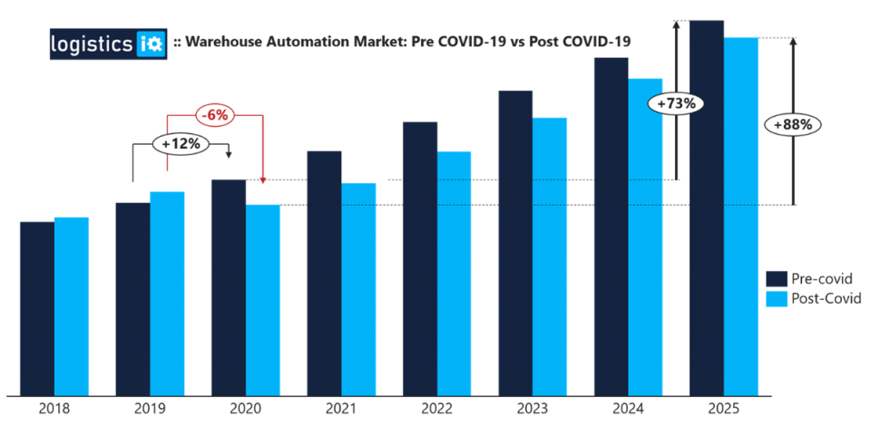 Despite of the temporary reduction in retail and e-commerce caused by lockdown and economic distress in this pandemic, we have seen a strong order intake of warehouse automation in 2020 which may reflect in revenues of these system integrators and manufacturers in 2021 or 2022. At the same time, a revenue dip of 6% is expected in 2020 as compared to our pre-pandemic forecast of 12% growth because projects were put on hold due to supply chain disruption and covid-19 locked down guidelines. It has also increased the order backlog at a record level for warehouse automation players.