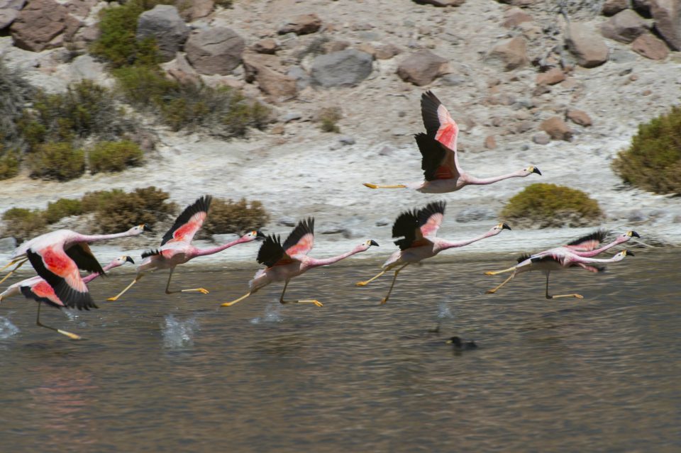 Flamingos are just one species that call these saline lakes home, eating algae and insects and rearing their young around the ponds, which in the arid Andes are often the only source of water.