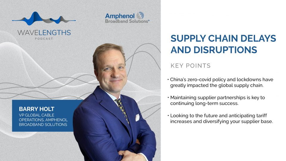Discussion about the current and future state of the global supply chain is a hot topic right now. Barry Holt, VP of Global Cable Operations for Amphenol Broadband sits down with host Daniel Litwin to discuss the short- and long-term effects plaguing the global supply chain and tips on how to overcome them.