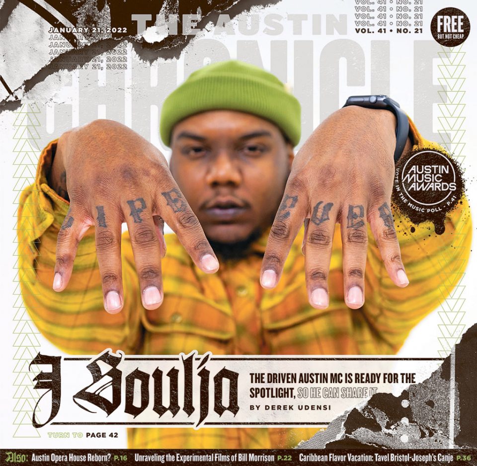 In this week’s cover story, Club Listings Editor Derek Udensi spotlights J Soulja, a longtime Austin rapper who released eighth studio album, More Than Nothin’, in the fall. In their interview, J Soulja candidly talks about his struggle for recognition in the scene, the work he’s done to provide performing opportunities for fellow rappers, and the dark times when he thought of quitting music. As Derek details in his story, 2022 is looking pretty promising for J Soulja. And as for recognition? He’s a first-time finalist in the Best Hip-Hop/Rap category in the Austin Chronicle‘s annual Music Poll. Check out the story here, and if you haven’t voted in the poll yet, you can do that until Jan. 31 at vote.austinchronicle.com.
