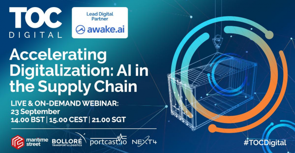 Join this exclusive webinar from TOC Digital and hear our expert panel representing Bolloré, Next4, Portcast, Awake.AI and maritime street to grasp the ways you can futureproof your business strategy, operations and efficiency through the increased use of AI.