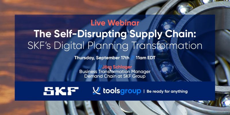ToolsGroup, a global leader in supply chain planning software, invites you to the webinar, “The Self-Disrupting Supply Chain–SKF’s Digital Planning Transformation” which shares tips for how to use a digital twin to support integrated supply chain planning.
