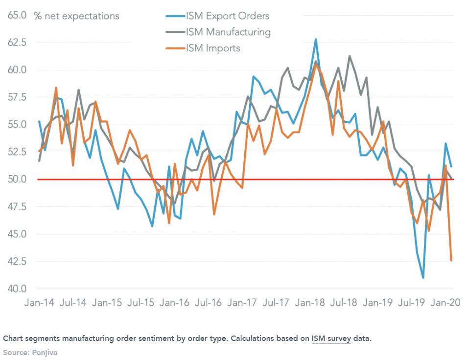 The slowdown in Chinese exports has taken time to be appear in trade data given shipping times involved and latency of data. Yet, we’ve already started to see a decline in seaborne shipments to the U.S. west coast while U.S. total imports in total fell 7.5% year over year in February including a 21.0% drop in shipments from China. Air freight rates have also surged, exacerbated by a loss of belly-cargo capacity in passenger jets.