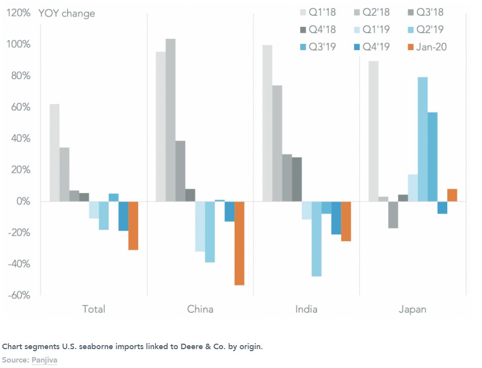 At the corporate level, Deere & Co. allocated $40 million in the current quarter for expedited freight even though just 8.5% of its supplies by sea to the U.S. came from China. Magna International meanwhile has flagged that the decision to expedite deliveries is up to its customers. It has nonetheless also been reducing its shipments from China to the U.S. in favor of those from Mexico – China represented 47.0% of its U.S. imports in Q4 while Mexico accounted for 23.6%.