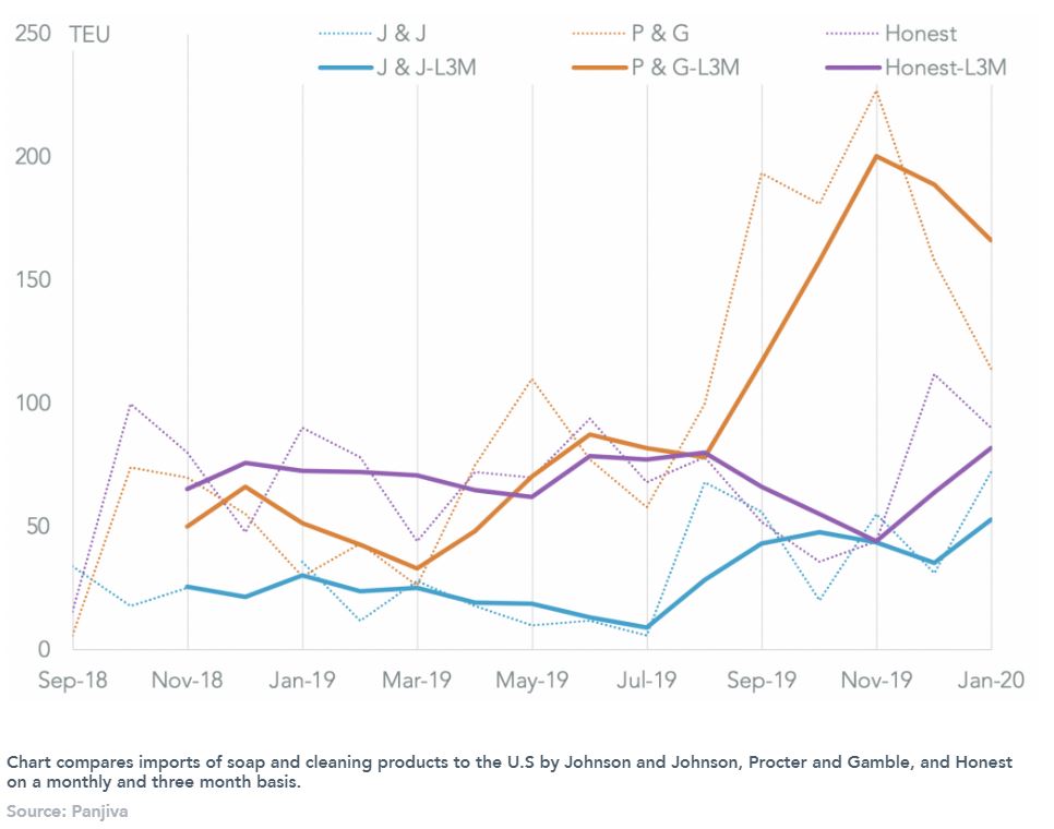 U.S. imports of soap and hand sanitizers had previously been in a decline with a 30.9% year over year drop in imports from Germany and an 18.7% slide in shipments from China in the three months to Jan. 31. Not all importers have seen a decline though, with a recent surge in shipments linked to Procter & Gamble and Johnson & Johnson.