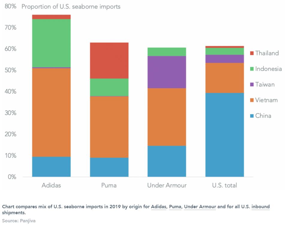 SPORTSWEAR MAKERS LESS DEPENDENT ON CHINA THAN AVERAGE
