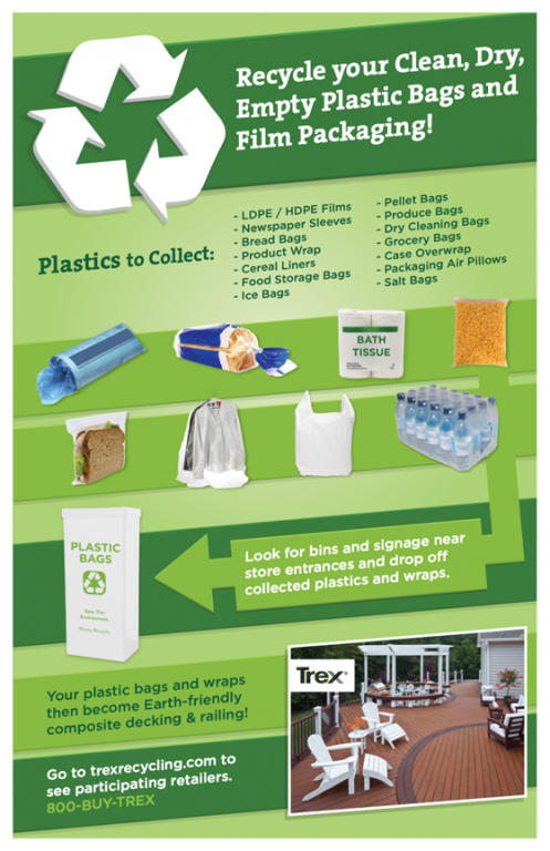 “I’m confident the community will help earn the donated bench by Trex,” said Phillips. “More importantly film plastic recycling is just another example of how we need to think differently about the waste material we generate and to learn how to properly discard unwanted materials.”