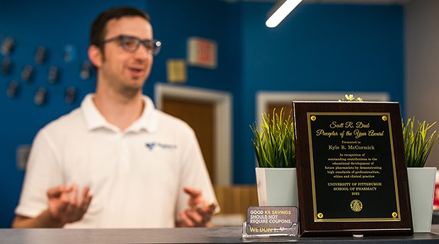 Pharmacist Kyle McCormick at work in Blueberry Pharmacy