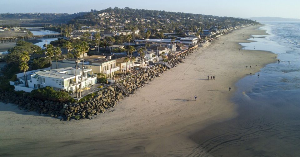 Ocean waves naturally eat away at California’s cliffs, creating new sand as seas advance. However, that equation has been upended in place such as San Diego, where often-opulent waterfront houses line long stretches of public coast.