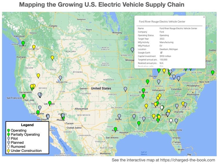 Right now, we are tracking 77 sites in the domestic EV supply chain, which includes extractive operations, materials refining, battery component and cell manufacturing, electric vehicle assembly, and recycling operations. Of the sites, 17 are in operation, 10 are operating but under construction, 17 are under construction, and more are being planned or piloted.