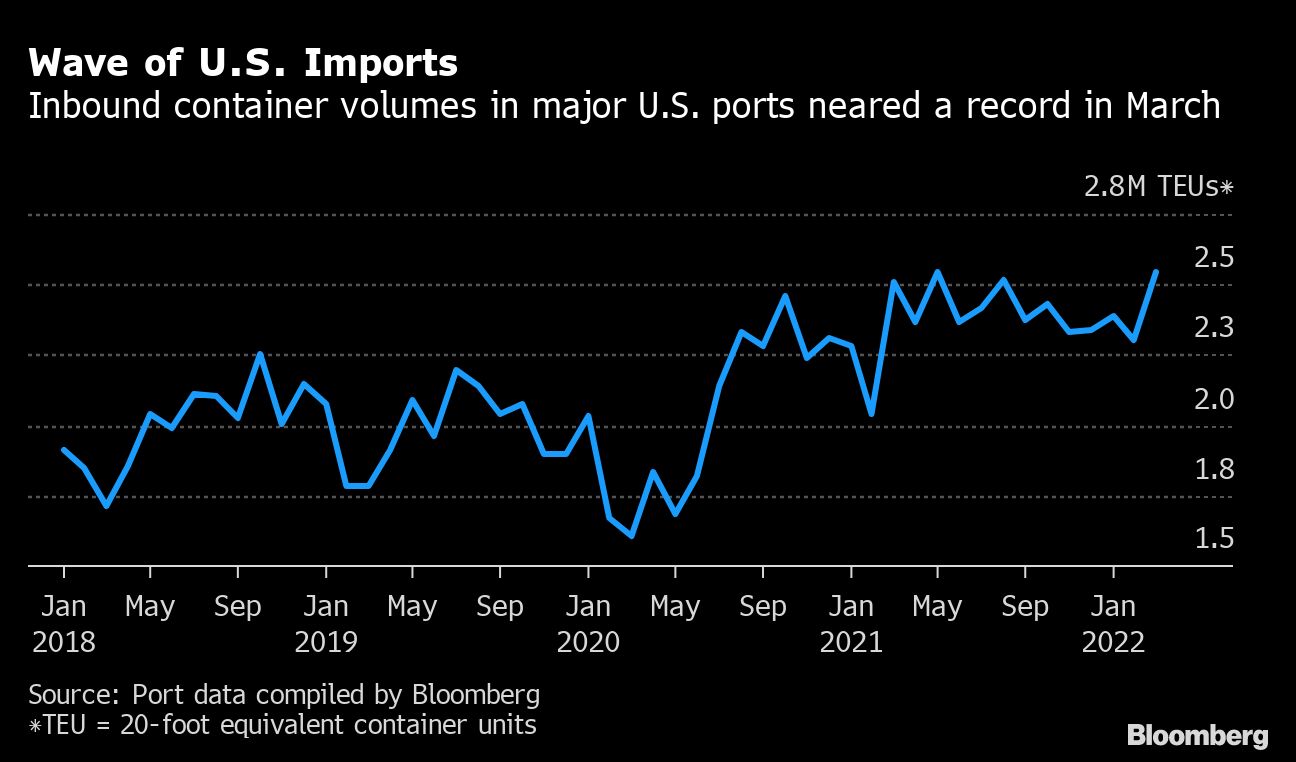 Longer queues of vessels seen off China’s coast aren’t helping. The line of cargo carriers has jumped after Shanghai, home to the world’s largest container port, initiated a citywide lockdown late last month to combat Covid-19 cases. The total number of container ships in port and off the hub’s shared anchorage with nearby Ningbo stood at 230 as of last Wednesday, a 35 percent increase from this time last year, according to Bloomberg shipping data.