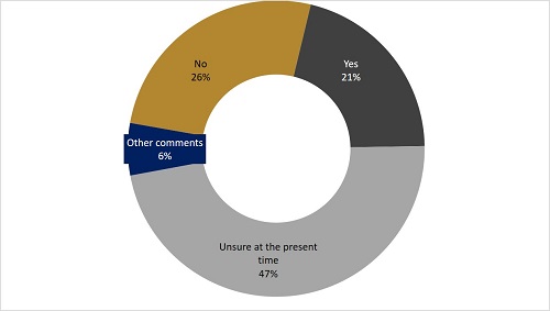 Caution, or maybe uncertainty, is the watchword when it comes to current plans. Twenty-one percent (21%) told us that yes, their plans have changed. Some 26% said no, it’s full steam ahead. Meanwhile, 47% – nearly half, said they are unsure at the present time.