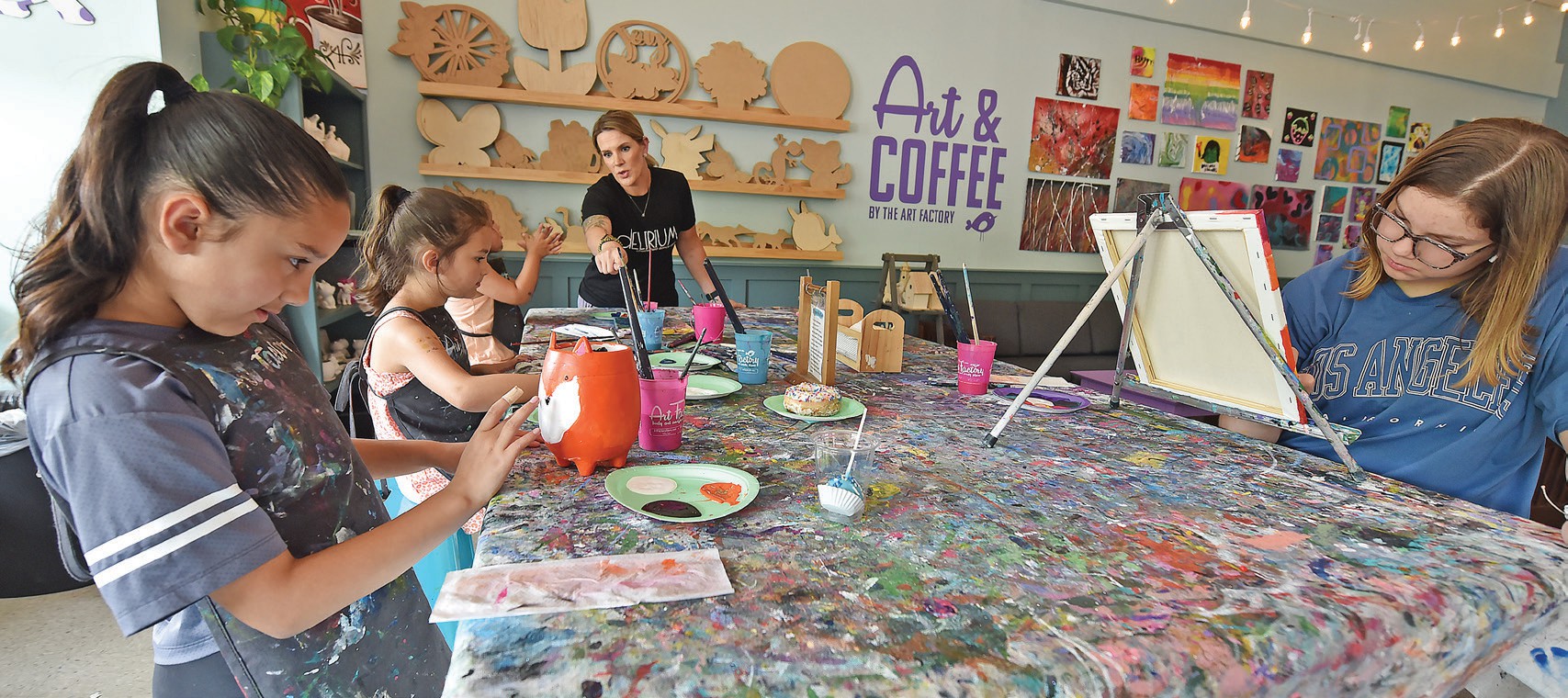 Tal Thompson (top) opened the Art Factory & Party Place in 2012 after her online face paint and makeup products business needed bricks and mortar space. In 2018, she expanded to 26,000 square feet, allowing space for art-minded kids parties, arts classes and various gatherings, with coffee and snacks included. ASH DANIEL