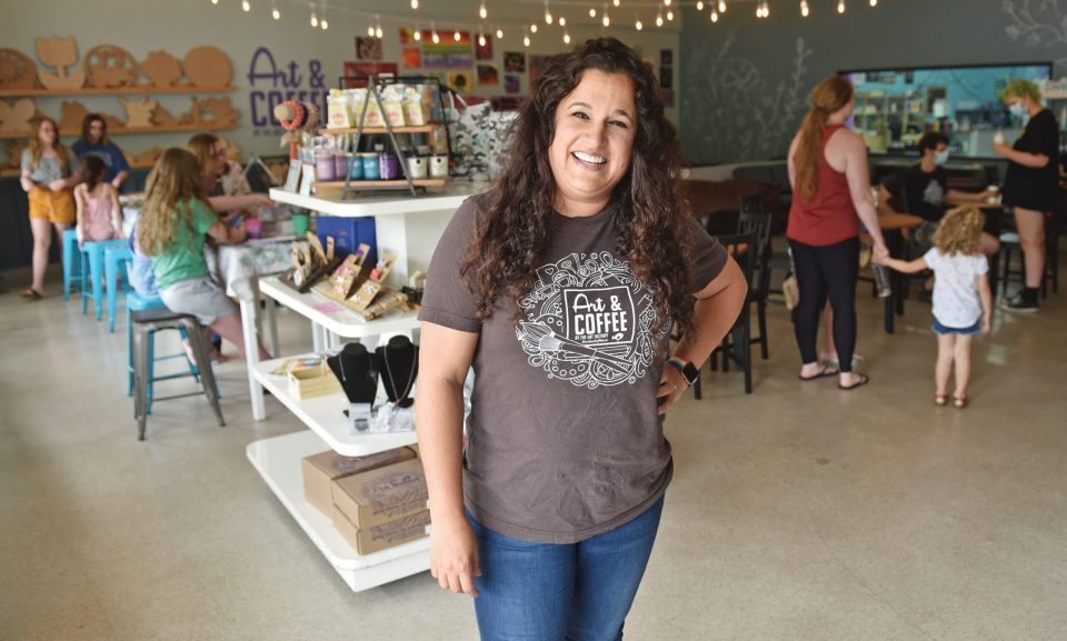 Actually, opening the shop was a bigger challenge. Art studios weren’t classified as an “essential” business by the government. Neither was the playground Thompson had inside the entrance. But restaurants were. Moving the playground to a separate room allowed her to move Art Factory & Party Place (now with Art and Coffee) into the food service category. “So our coffee shop is our COVID baby,” she explains. And it’s thriving.