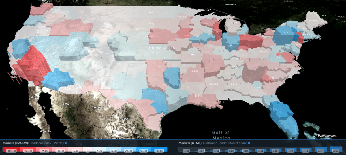 SONAR: HAULW (color) and Outbound Tender Market Share (height).