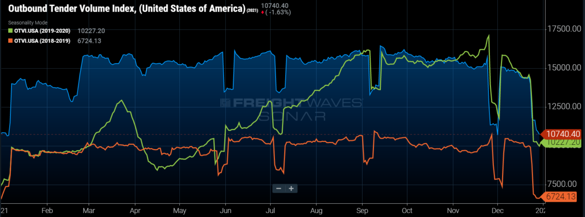 Despite the soft week for volumes, OTVI is still outperforming 2020 levels by more than 5%. OTVI will continue to show weakness throughout the next seven to 10 days as the holiday noise is erased. Moving into the first quarter, which is traditionally the softest period for freight in the year, volumes will likely rebound considerably due to the ports continuing to work through backlogs and bookings destined for the U.S. reaching near record highs within the past week.