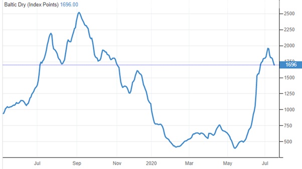 The Baltic Dry Index (BDI) is a composite of three sub-indices, each covering a different carrier size: Capesize (40%), Panamax (30%), and Supramax (30%). It displays an index of the daily USD hire rates across 20 ocean shipping routes. Whilst most of the NZ log trade is shipped in handy size vessels, this segment is strongly influenced by the BDI.