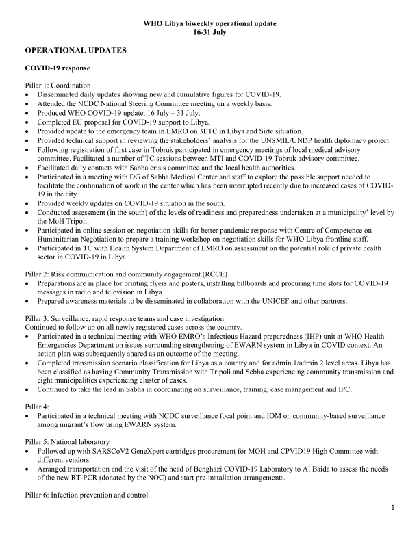 WHO Libya biweekly operational update (16-31 July 2020) – Libya