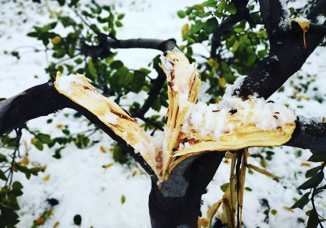 A photograph showing the loss in a north Kashmir apple orchard because of snowfall on November 3, 2018. KL Image: Faheem Mir