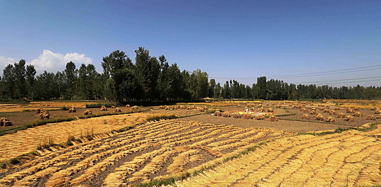 Golden fields: Parts of Kashmir are looking like golden as the farmers are busy harvesting paddy. KL Image: Bilal Bahadur