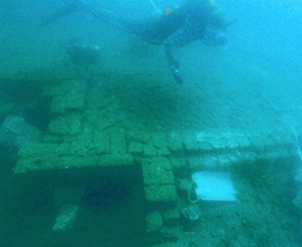 Now archaeologists who have visited the settlement underwater have captured photos of an incredible submerged city under the waves – with the old port’s sea boundaries still standing.