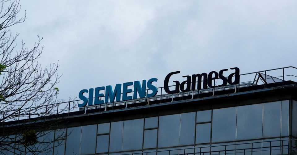 The Siemens Gamesa sign is displayed at the renewable energy company’s headquarters in Zamudio, Spain, April 28, 2022. REUTERS/Vincent West