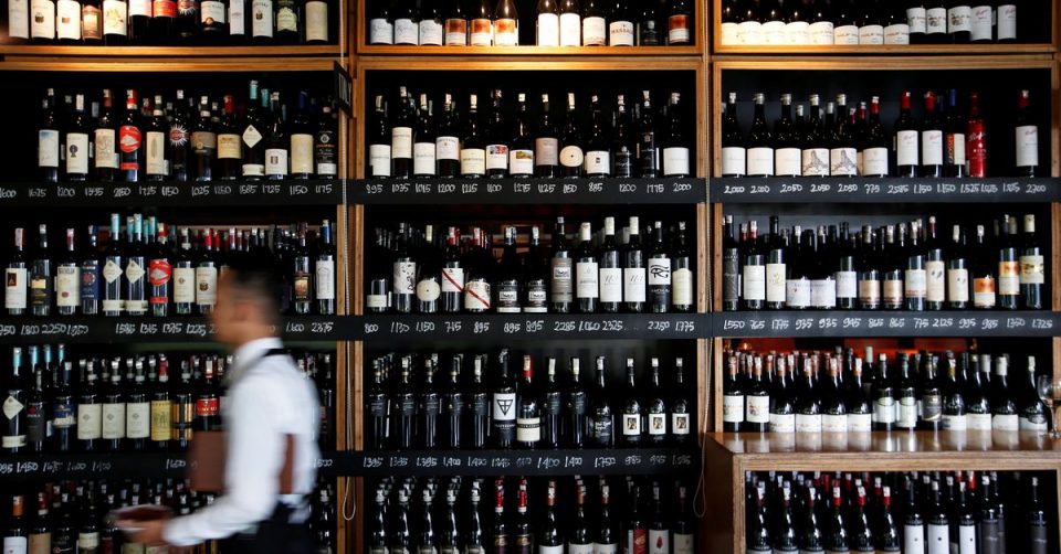 A server passes a wine rack at the Cork & Screw restaurant in Jakarta, Indonesia, October 20, 2018. REUTERS/Willy Kurniawan/File Photo