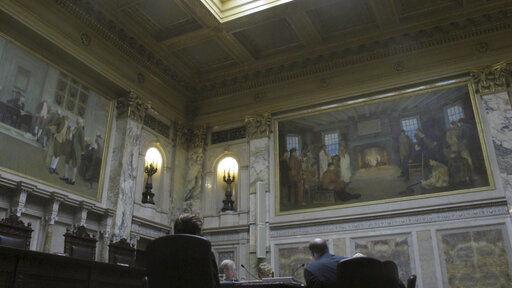 FILE – In this June 29, 2010, file photo, Wisconsin Supreme Court justices meet in the court chamber in Madison, Wis. The Court turns its attention to redistricting on Thursday Jan. 14, 2021, considering a request backed by Republicans to change its current procedures for handling cases related to the once-a-decade process of drawing new political boundaries. (AP Photo/Ryan J. Foley File)