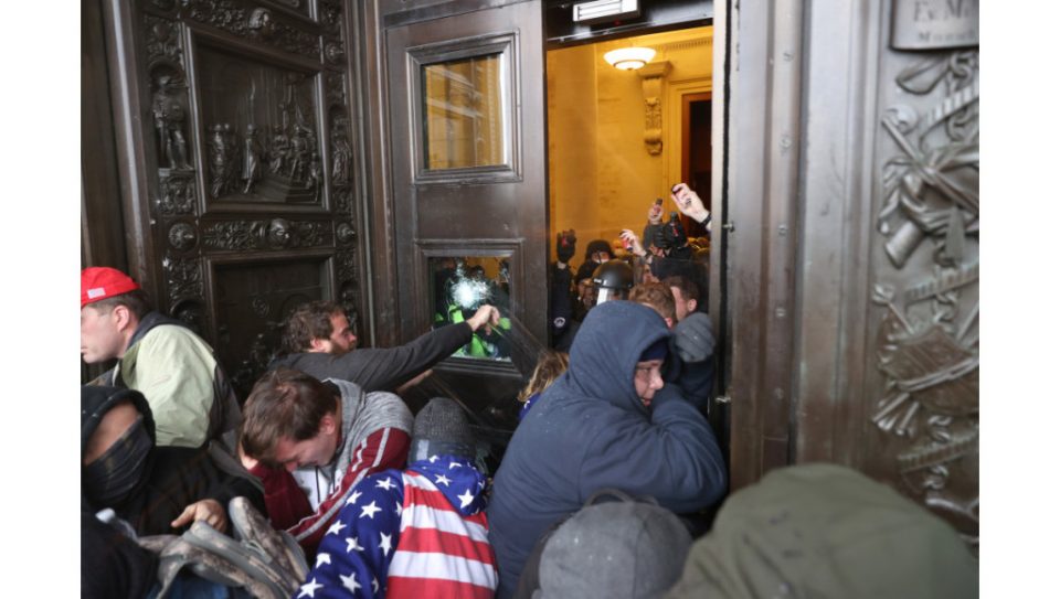 The woman was shot earlier Wednesday as the mob tried to break through a barricaded door in the Capitol where police were armed on the other side. She was hospitalized with a gunshot wound and later died. The woman who died was identified as San Diego resident Ashli Babbitt, NBC San Diego reported.