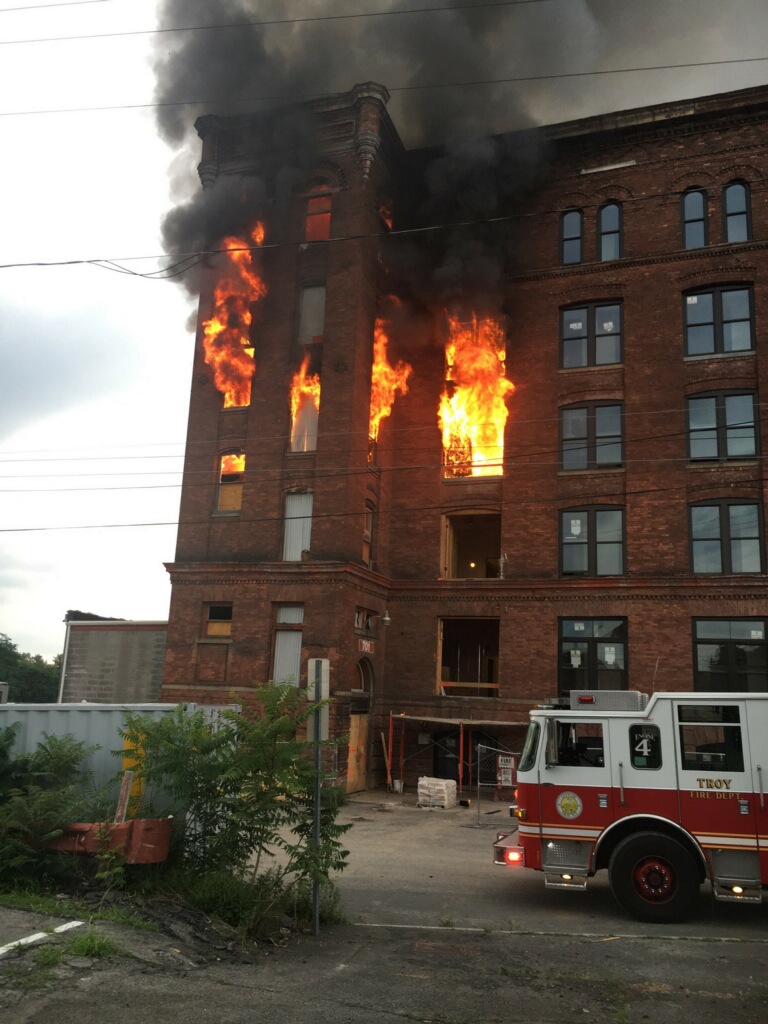 The $16 million conversion of the former Marshall Ray building was 80 percent complete, said Jeff Buell, a principal at Redburn Development Partners, when fire broke out on a Friday evening after workers had left for the day. Troy firefighters were credited with saving the building, although damage from flames, smoke and water was “substantial,” Buell said, boosting the project’s total cost to $26 million.