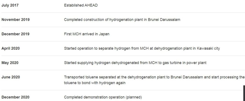 Milestones of Demonstration Project for a Hydrogen Energy Supply Chain