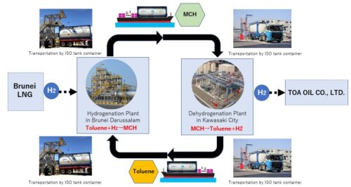At this time, the process of transporting back the toluene separated by dehydrogenation from Japan to Brunei Darussalam and binding the toluene again with hydrogen has started.** This would complete the hydrogen supply chain and would be the beginning of circular stable operation.
