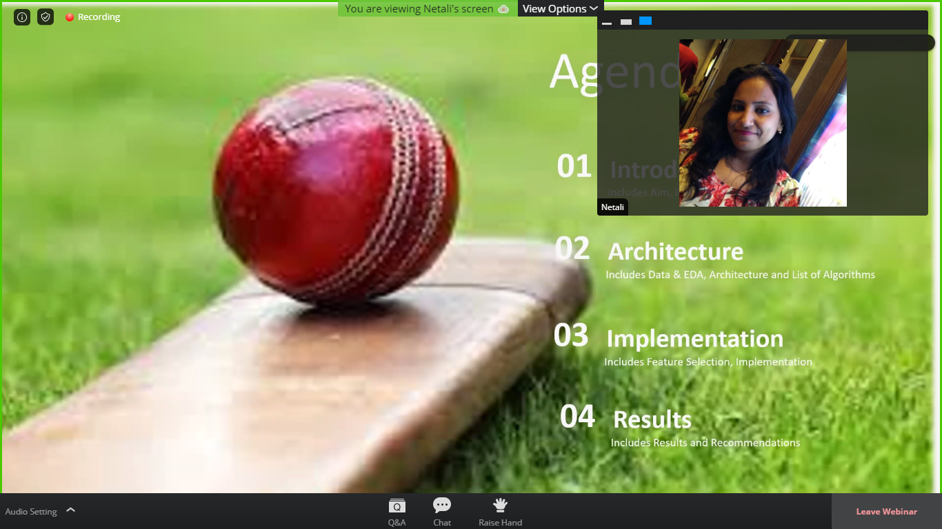 In this talk, Netali Agrawal, Lead Business Analyst at Infosys talked about a predictive analytics model in cricket where the goal of this model is to predict the winner for ICC men world cup 2019 based on the historical match data player-wise. She started from the problem statement and depicted the steps that took place in the model including feature engineering, data preparation, prediction on World Cup dataset, validation, among others. During the talk, Netali showed how she calculated the team strength based on the individual player batting and bowling strength who played in respective matches.