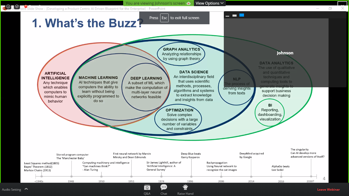 Johnson Poh, Head, Group Enterprise AI at UOB Bank discussed the essentials of artificial intelligence and its role in this new paradigm. In this talk, Poh covered several fundamental topics including AI, Big Data, Analytics and its broad field with the help of a Venn diagram, the relevance of emerging technologies, how to implement a data-driven strategy taking on the lens of people, process and technology, how AI changed the financial industry, among others.