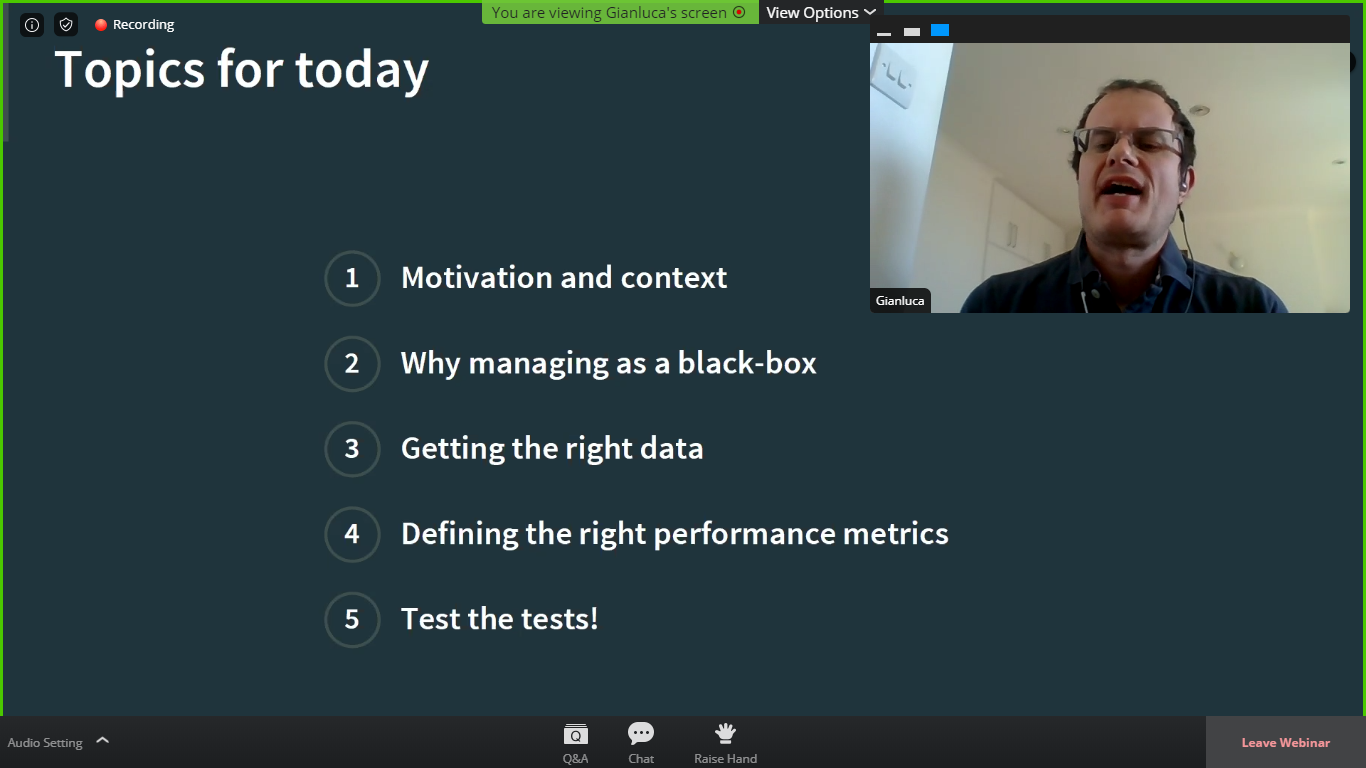 In this talk, Gianluca Gindro, Head of Data Science at Kuoni discussed the importance of managing a black box and how to manage a black box from the business point of view. Treating data science as a ‘black-box’, the speaker focused on the key contact points of data science with the business that should never be neglected and also in practice how the same machine learning model can take different shapes depending on changing business needs.