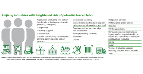 Where there is suspicion that the goods contain materials originating in Xinjiang, these industries’ products will likely be held at customs as banned from imports into the US on suspicion of being sourced with forced labor.