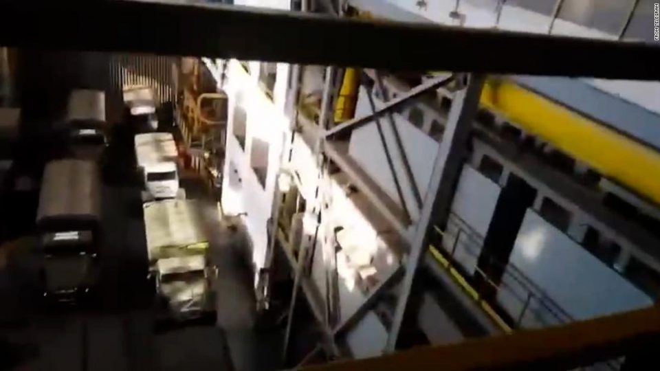 The footage shows one of the six turbine rooms located on the western side of the nuclear plant, located in the southeastern city of Enerhodar. Each turbine hall is connected and built into a large building that houses a nuclear reactor.
