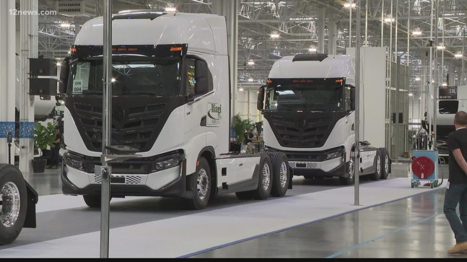 After four years, the first zero-emission semi-trucks from electric automaker Nikola are being shipped to customers. Gov. Ducey took a tour of the facility.